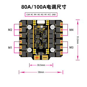 The BLS 80A 4-in-1 ESC is a high-power, compact ESC designed for serious FPV drone pilots. Engineered to handle 3-8S LiPo batteries, it delivers a robust 80A of continuous current (90A burst) per motor, ensuring powerful and responsive performance for demanding setups.