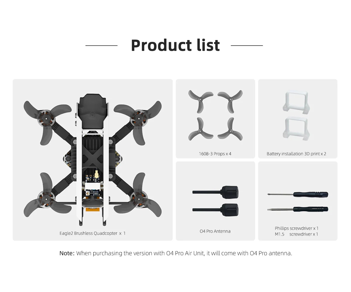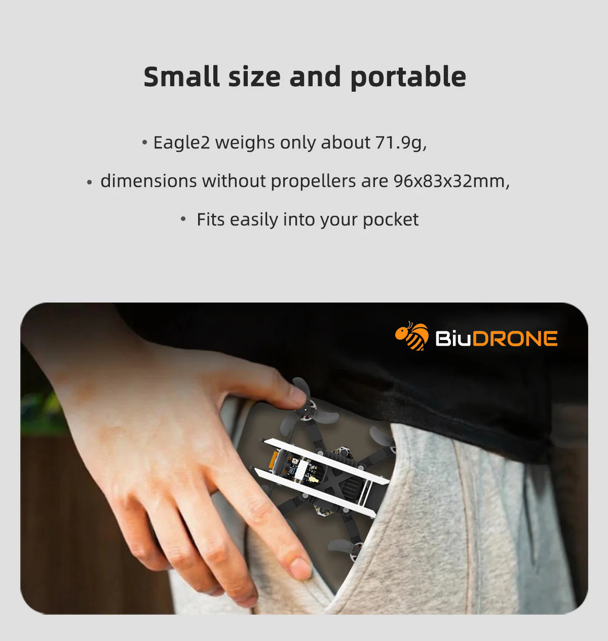 BiuDrone Eagle2 HD O4 Pro Smallest 1.4/1.6 Inch 3S Brushless FPV Drone